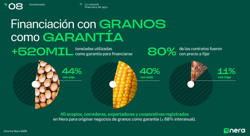Se trata de una alternativa de financiación que viene capturando mayor protagonismo en tanto a través de la tecnología es posible digitalizar cada vez más activos productivos. En este sentido, en 2025 Nera lanzó un nuevo producto -“Crédito Grano Disponible”- que le permite al productor acceder a liquidez inmediata utilizando como respaldo sus granos almacenados en bolsas para silo y está disponibilizando en 2026 opciones con garantías para ganadería.