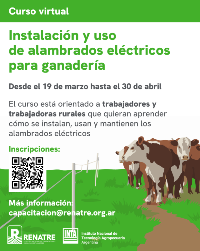 El Registro Nacional de Trabajadores Rurales y Empleadores (Renatre) lanzó la segunda edición de la capacitación virtual sobre instalación, uso y mantenimiento de alambrados eléctricos, una propuesta orientada a fortalecer conocimientos técnicos clave para el manejo ganadero.