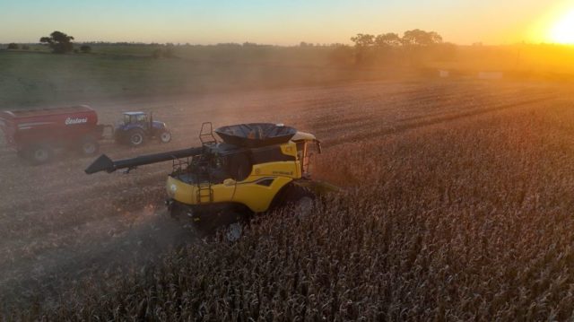 En la experiencia también se utilizó la cosechadora CR7 de New Holland, un equipo diseñado para mejorar la productividad y reducir pérdidas durante la cosecha. La máquina incorpora el sistema de doble rotor característico de la marca, orientado a mejorar la calidad de grano y la capacidad de trabajo en condiciones exigentes.