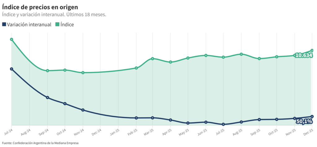 En diciembre, el precio en origen de la canasta IPOD registró una recuperación en su variación interanual del 50,1%. De esta manera, cierra el año 2025 con una variación acumulada de 14,6% y, en comparación con noviembre, presentó un aumento del 13,5%.