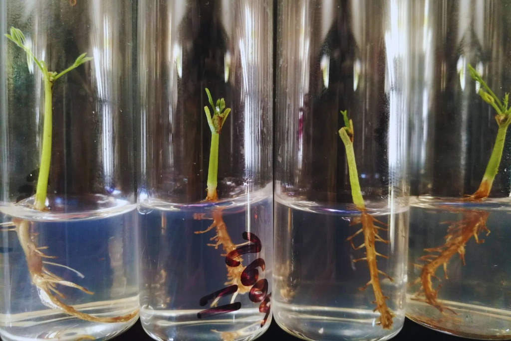 “Realizar los microinjertos en primavera triplica la probabilidad de brotación respecto al verano”, ejemplificó Carloni. Además, las plántulas cultivadas en oscuridad, utilizadas como portainjertos y conocidas como “etioladas” duplican la tasa de éxito frente a plántulas no etioladas. El uso de reguladores de crecimiento como el ácido indol-3-butírico (IBA) también aumenta significativamente la supervivencia de las plántulas durante la aclimatación.